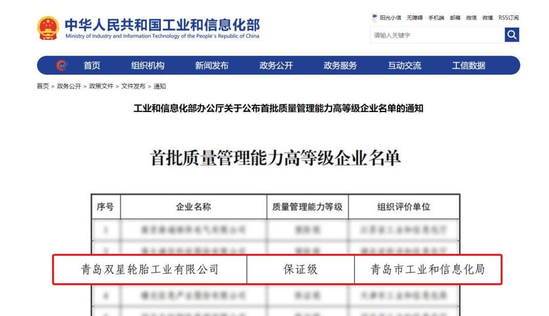 • 行業(yè)唯一!雙星輪胎入選工信部質(zhì)量管理能力高等級企業(yè)名單